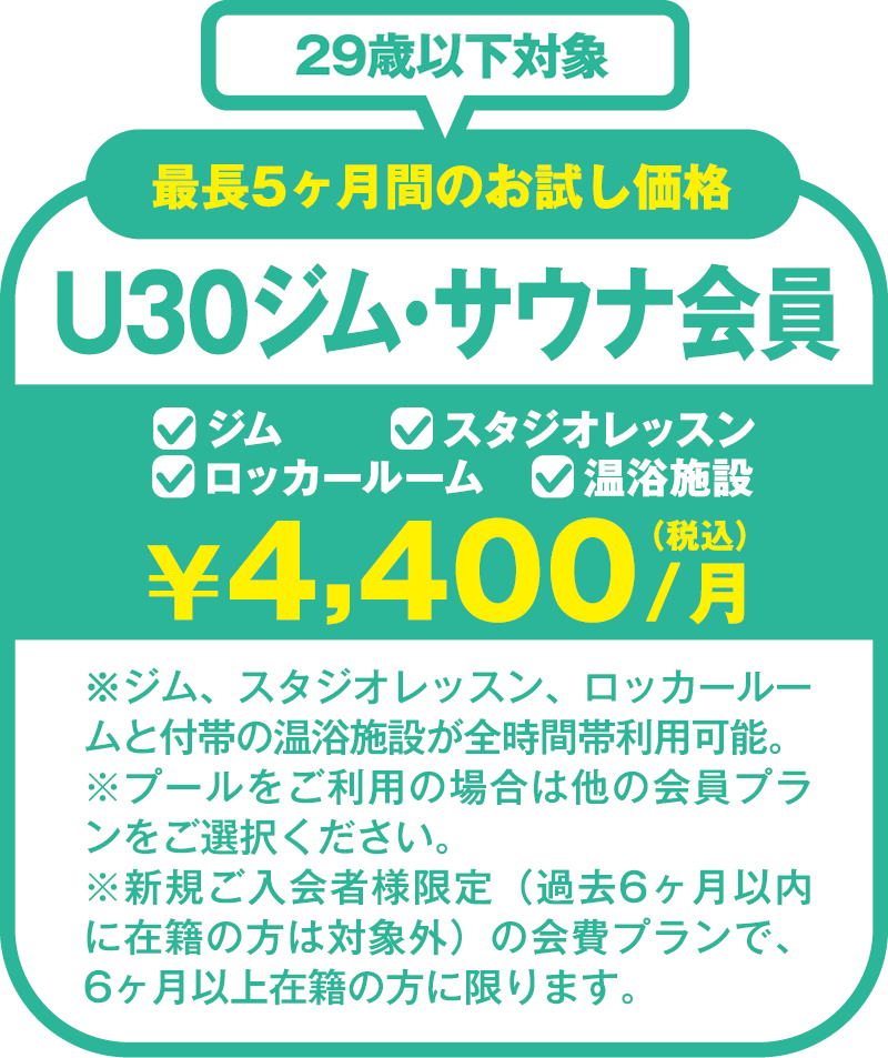 ※各会員種別のご利用終了時間の30分前からはロッカー、浴室エリアのみの利用になります。