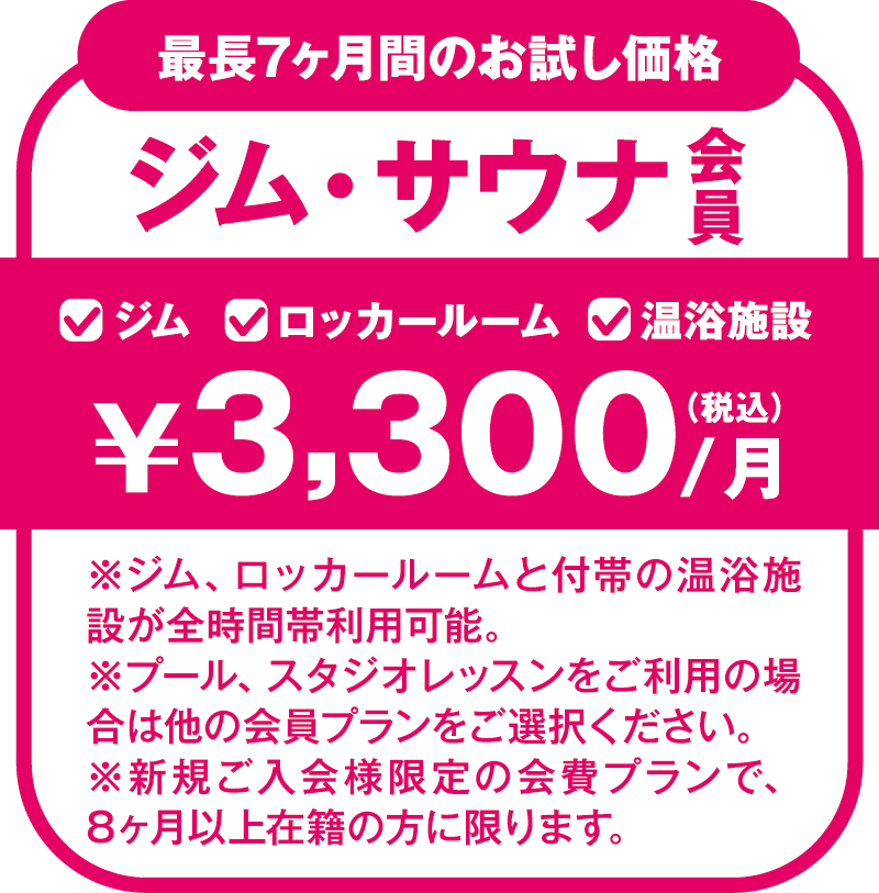 2ヶ月目月会費から¥3,300割引(税込)